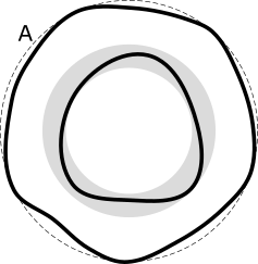 断面の場合、これは2つの円の間の最小距離です。これらの円は、基準軸を中心とし、基準軸に対して垂直に方向付けられます。それらはそれらの間の断面全体を含んでいます。