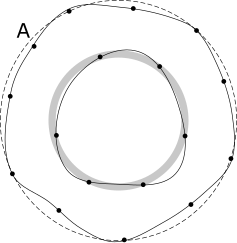 これは、2つの円の間の距離です。円はそれらの間のすべての測定点を含みます。円は基準軸を中心とし、基準軸に垂直です。