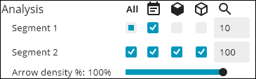 すべてのセグメント分析チェックボックスの下に、矢印密度のスライダーバーがあります。