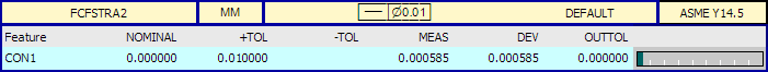 これは、単位公差ごとの軸真直度の例です。上のセグメントは全体の真直度で、下のセグメントは単位あたりの真直度です。