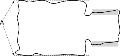 実際の部品表面は実線を使用し、実際の基準要素は破線を使用し、実際要素の表面を含む最小公差域が影付きの領域に表示されます。公差域は、実際の基準軸と正確に同軸です。