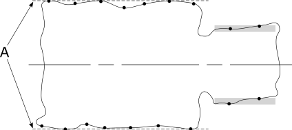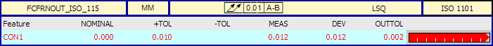 測定された公差域は、測定された基準軸と全くに同軸です。この場合、測定点が密に測定されなかったため、測定値が実際の値よりも小さくなっています。