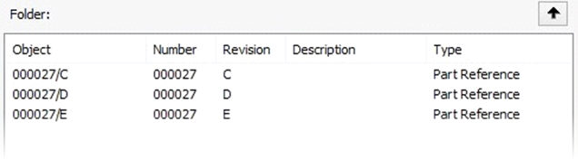 類型カラムを使用して、ユーザがどのタイプのオブジェクトを使用しているかを確かめられます: 「フォルダー」タイプは、オブジェクトがフォルダーであることを意味します。「パーツ参照」タイプは、オブジェクトが測定ルーチンであることを意味します。フォルダーの一覧の上のディレクトリーに移動する必要がある場合は、最大の黒矢印をクリックします。
