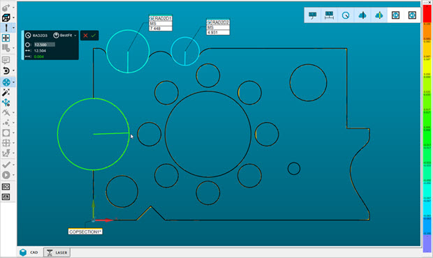 2D半径ゲージ機能は、ポイントクラウドまたはメッシュ断面上の半径を測定するために使用できるクイックチェックツールです。