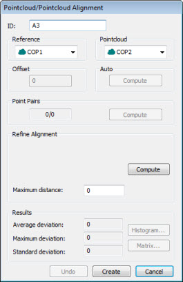 アラインメントダイアログボックスの完全な説明については、トピック「ポイントクラウド/CADアラインメントダイアログボックスの説明」を参照してください。