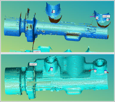 アライメントに使用できるCOPコマンドが測定ルーチンに2つ以上あることを確認してください。PC-DMISは、ポイントクラウドを整列できるようにこれらの要素を必要とします。