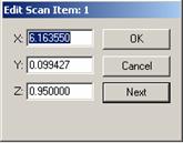 こうすることで[スキャン項目の編集] ダイアログボックスが表示され、X, Y, Z の値の編集が可能となります。これにより、スキャン項目の編集ダイアログボックスが表示され、X、Y、Zの値を編集できます。