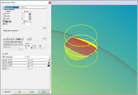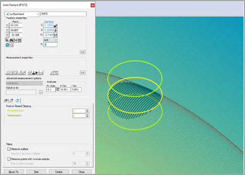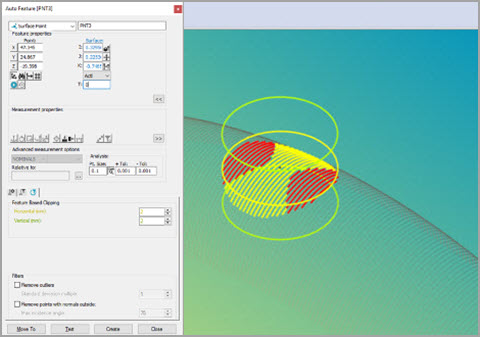 ログファイルが有効な場合、拡張面上点の計算からの追加結果が C:\ProgramData\Hexagon\PC-DMIS\2022.1\NCSensorsLogs\FeatureExtractor フォルダ内のファイル「WaiFE_Debug.txt」に記載されています:
