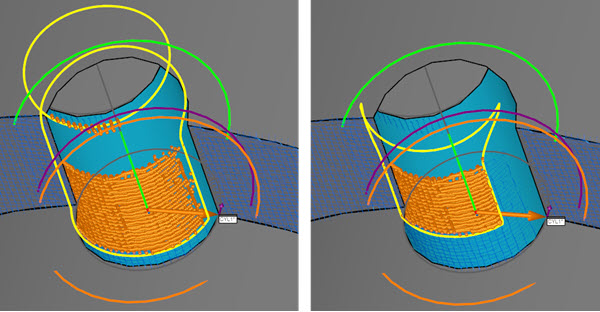CADオフセットが1(左)とCADオフセットが3(右)の円筒自動要素の例