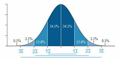 つまり、最初の評価では標準偏差はすべての点に対して評価されます。正規分布では、これは以下のように表示されます: