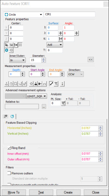 現在、レーザーセンサを使用して測定できるのは内側円 (穴) のみです。