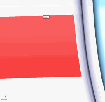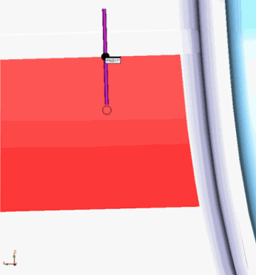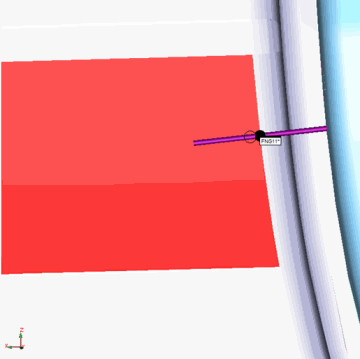 目的のマスターサイドポイントが強調表示された面の上にない場合は、描画された円の領域をクリックしてインターフェイスをリセットできます。その後、PC-DMIS で最初の点を再取得する準備が完了します。新しい面選択を再定義するために、PC-DMISは前の面を強調表示したままにします。次の例の写真を参照してください: