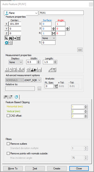 グラフィック表示ウィンドウで、[レーザー]タブを使用して測定機を平面位置の中心に移動し、[位置から点を読み取る]ボタン(