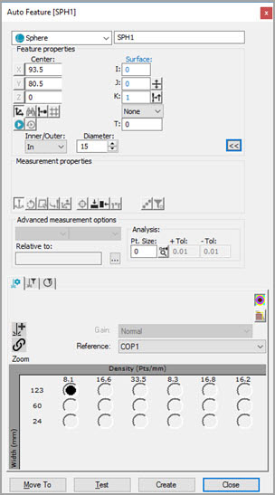 X、Y、Z、I、J、K、内側/外側の値、直径、及び他のパラメータの理論値を手動で入力します。