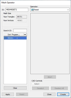 作成をクリックしてMESH/OPER,RESETコマンドを編集ウィンドウに挿入します。