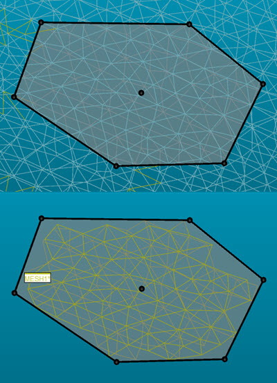 グラフィック表示ウィンドウで、メッシュのエリアをクリックしてポリゴン選択エリアを定義し、Endキーをダブルクリックするか、または押してポリゴン選択を閉じます。