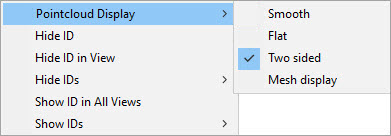 前面と裏面を対照的な色で表示するには、グラフィック表示ウィンドウでポイントクラウドを右クリックし、[ポイントクラウド表示|両面]の順に選択します。