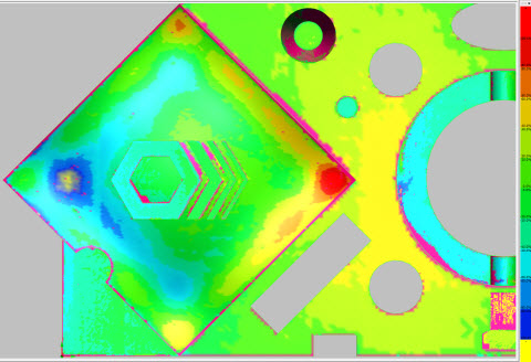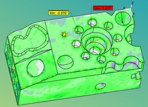 次に、PC-DMISは、テッセレーションされた各三角形の偏差を計算し、それに応じてCADモデルに色を付けます。