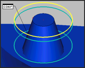 PC-DMISはグラフィックの表示ウィンドウで作成または編集する要素の最上部または周辺部に描画するグラフィックオーバーレイを提供します。これらの色付きオーバーレイはプローブツールボックスおよび自動要素 ダイアログ ボックスにおける色付きパラメータまたは設定の適合に対して視覚的全体像を提供します。