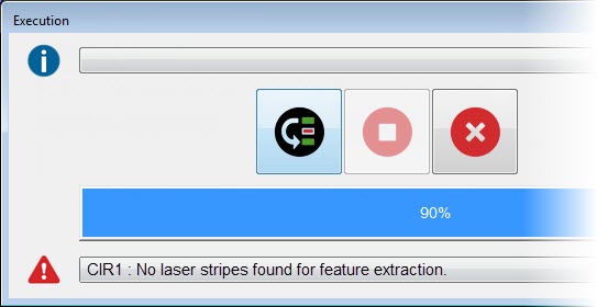 CIR2が抽出に失敗する場合、そのエラーが発生しますが、デフォルト実行・モードが実行を継続するので、マシンがCIR3を既にスキャンしている間か、または将来の要素に計算上のエラーが実行ダイアログ・ボックスに現われるかもしれません。測定エラーが発生するときに実行を中止させたいならば、シーケンシャル実行モードを使ってください。