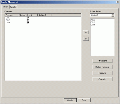 アラインメントのバンドルの設定は、マルチプル レイカ トラッカー ステーションで測定される関連バンドル配置要素を必要とします。これをするには: