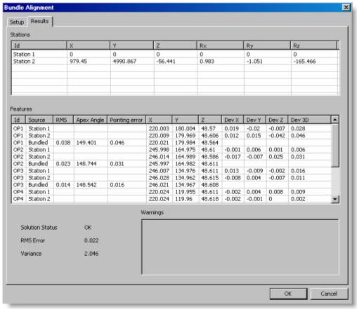 ソリューションステータスがOKの場合、OKをクリックして、バンドルアラインメントコマンドを測定ルーチンに挿入します。新規ステーションが方向付けられネットワークで利用可能になります。
