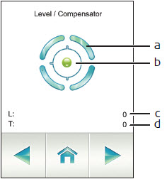 システムを水平にしたらトラッカー|ニベル|傾斜読み出しの開始メニュー項目を選択して、傾斜読み出しウィンドウを表示します。傾斜計測値ウィンドウでは、1秒あたり3回ニベル測定を読むことができます。必要に応じて画面を最大化することができます。