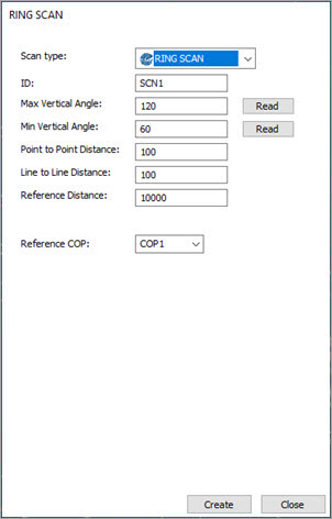 [リングスキャン]ダイアログボックスからリングスキャンを実行し、リングスキャンコマンドを作成するには: