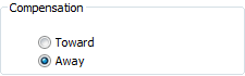 クィックスタートインターフェイスの参照要素エリアから3Dタイプを選択した場合、TowardおよびAwayボタンが円またはスロットに対して表示されます。それらは、要素の法線ベクトルがトータルステーションの方向を指しているか、トータルステーションから離れる方向を指しているかをユーザーが指定できるようにすることによって、円またはスロットの補正を決定します。PC-DMIS は要素の現在のベクトルを数学的に評価して、ユーザーの選択に基づいて必要に応じてそれを反転します。
