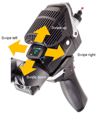 | 左にスワイプ | 開いている QAM 画面または測定ルーチンでの位置に応じて、このジェスチャは以下の動作のいずれかを実行します。