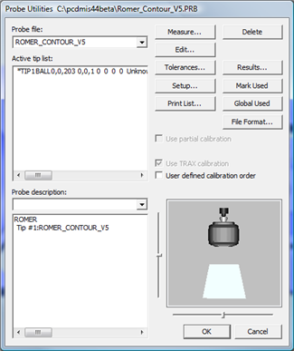 CONTOUR プローブと プローブのユーティリティダイアログボックス内の適切なレーマーアームを使用するプローブ構成を定義します。パーセプトロン輪郭プローブの種類は設定オプションダイアログボックスで指定されます。