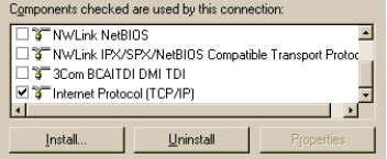 (チェックボックスではなく) テキストを選択して、インターネットプロトコルを強調表示します。