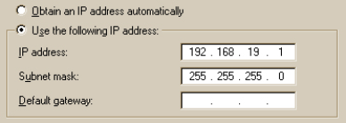 インターネットプロトコル (TCP/IP) プロパティ ダイアログ ボックスの一般 タブで、以下のIP アドレスを使用とラベル付けされているオプションを選択します。画像に示すとおりに下記の値を入力します。