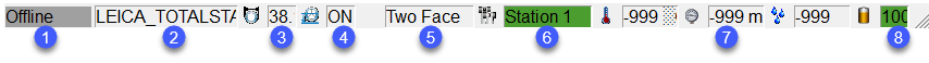 トータルステーションのステータスバーはPC - DMIS ポータブルが起動されるとき、自動的にトータルステーションのインタフェースで現れます: