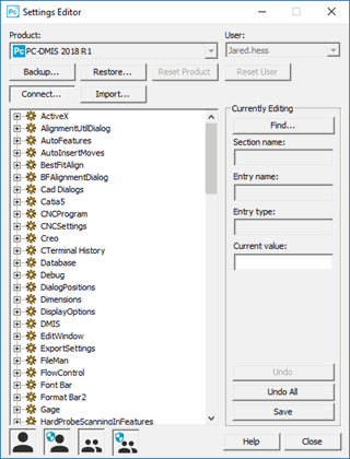 PC-DMIS Settings Editorアプリケーションは、PC-DMISのエントリを変更するために必要なすべてのツールを提供します。