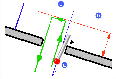 上の図2は、探し方向に沿って移動してヒットしたときに、パーツの側面に接触するステムを示しています: