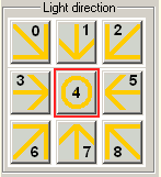 4つの光源の光源の方向を指定します。8つの可能な値はライトの方向を表すために使用されます。以下のグラフィックは番号を表示して各ライトの方向と光が発生される方向に使用されます。
