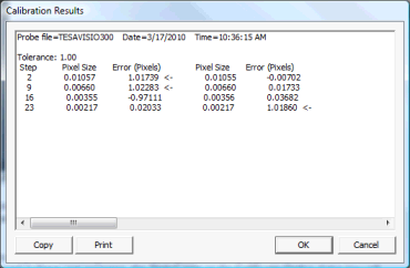 ピクセルサイズを選択すると、PC-DMISは一連の校正ターゲットを自動的に測定します。