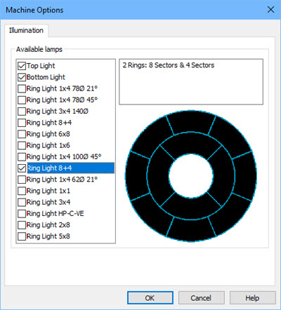 PC-DMIS Offlineは、次の方法で特定のリングライトを定義できます。