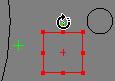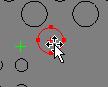 ゲージの移動: ポインタが4方向の矢印に変るまで、ゲージの中心の赤い十字の上にポインタを置きます。ポインタをクリックしてドラッグし、ゲージを新しい場所に移動します。また、パートの任意点をクリックすると、PC-DMIS Visionはクリックした場所にゲージを移動させます。