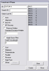 8個の面上点が「ステップ3: 基準要素Aの要素測定」に測定されたら、それらの点から基準要素A を構築できます。