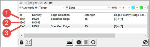 アクティブなターゲットが実行されると、ターゲットの幅、エッジタイプ、エッジ極性、フォーカス及びフィルターなどのようなパラメータを編集することができます。これらのパラメータのいずれかに変更が行われる場合、最後のアクティブターゲットの再実行がトリガされます。