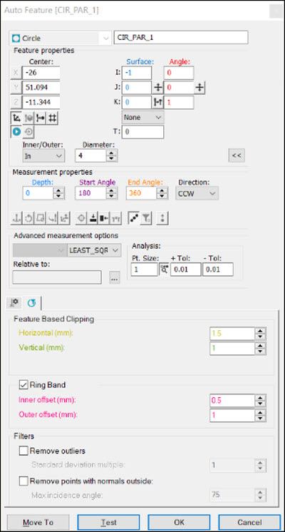 CIR_PARA_1 =FEAT/LASER/CIRCLE/DEFAULT,CARTESIAN,IN,LEAST_SQR