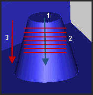 레이저 센서는 원뿔의 길이를 따라 스캔한다. 그것은 원뿔 벡터의 방향으로 이동한다. 레이저는 그 벡터에 거의 수직이어야 한다.