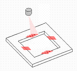 작은 사각형 슬롯은 레이저 센서의 줄의 한번의 통과(지나가기) 가 필요하다.