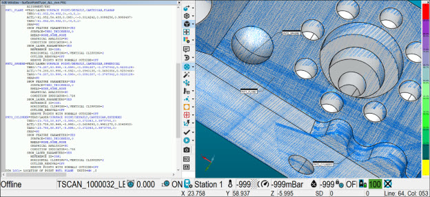 레이저 표면 점 특성이 아직 측정되거나 수집되지 않은 경우, PC-DMIS는 처음에 값을 NONE으로 설정한다.