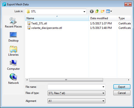 메쉬 데이타를 STL 파일로 보내기 위해: