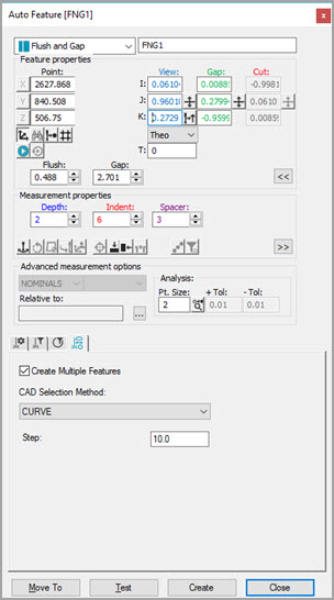 정의된 윤곽 주위의 일련의 비간극과 간극 특성을 수집할 수 있다. 다음 예를 참조한다: