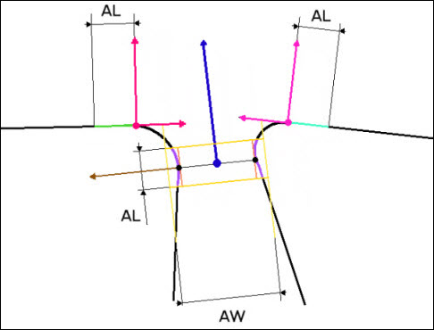 마스터 플러쉬 영역 - 마스터 플러쉬 영역에서, 지점은 마스터 가장자리 벡터의 반대 방향에 있는 마스터 면 지점에서 시작하는 영역에서 분석된다. 그것은 갭 길이 값의 60 % 인 길이를 가진다.