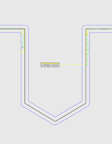 그래픽 디스플레이 창에서, 단면 위로 이동한다음, 시작 지점을 보여주기 위해 클릭하고 끈다.